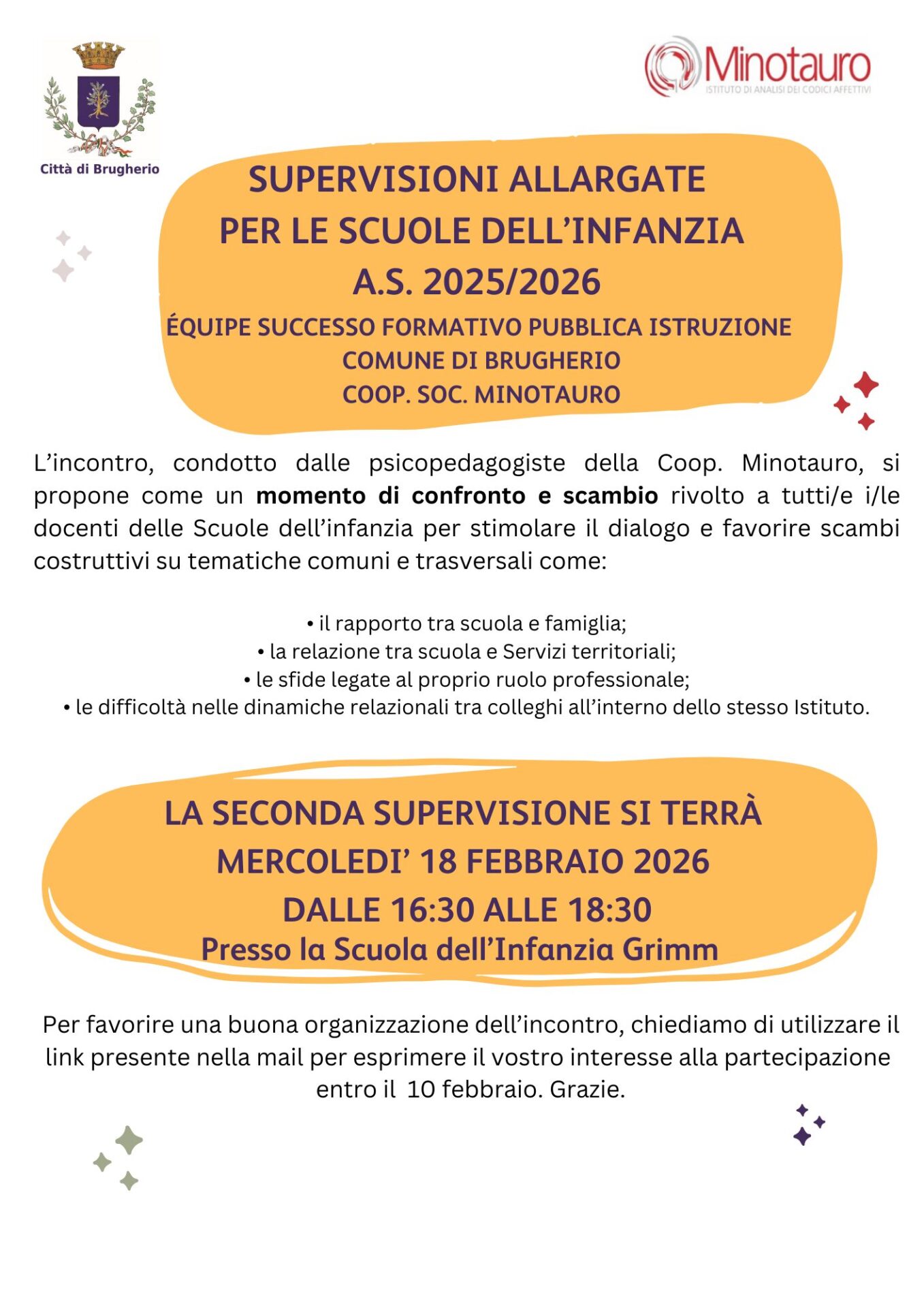 Si pubblicano i calendari di tutti gli Sportelli di Ascolto Psicopedagogici e delle attività di osservazione e supervisione rivolte alle scuole dell’Infanzia e Sezione Primavera per l’a.s. 25/26, periodo gennaio/giugno 2026